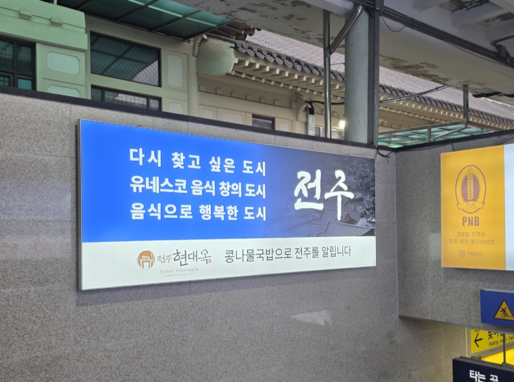 오늘부터 전주역 역사 내 전광판을 통해 현대옥 광고가 시작 되었습니다.