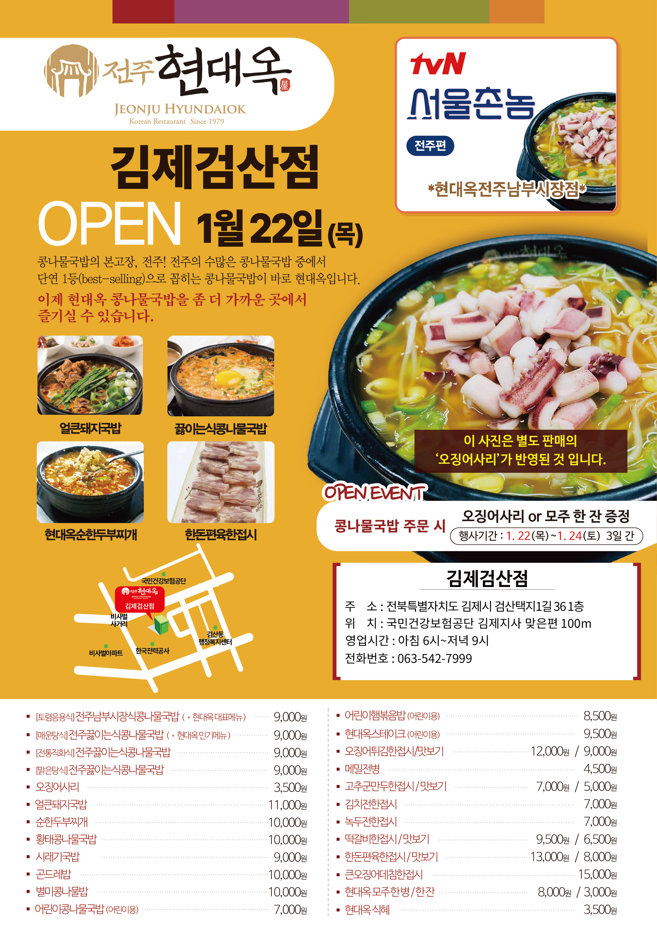 오늘자 전북특별자치도 김제시 검산동에 현대옥 김제검산점이 오픈하였습니다.