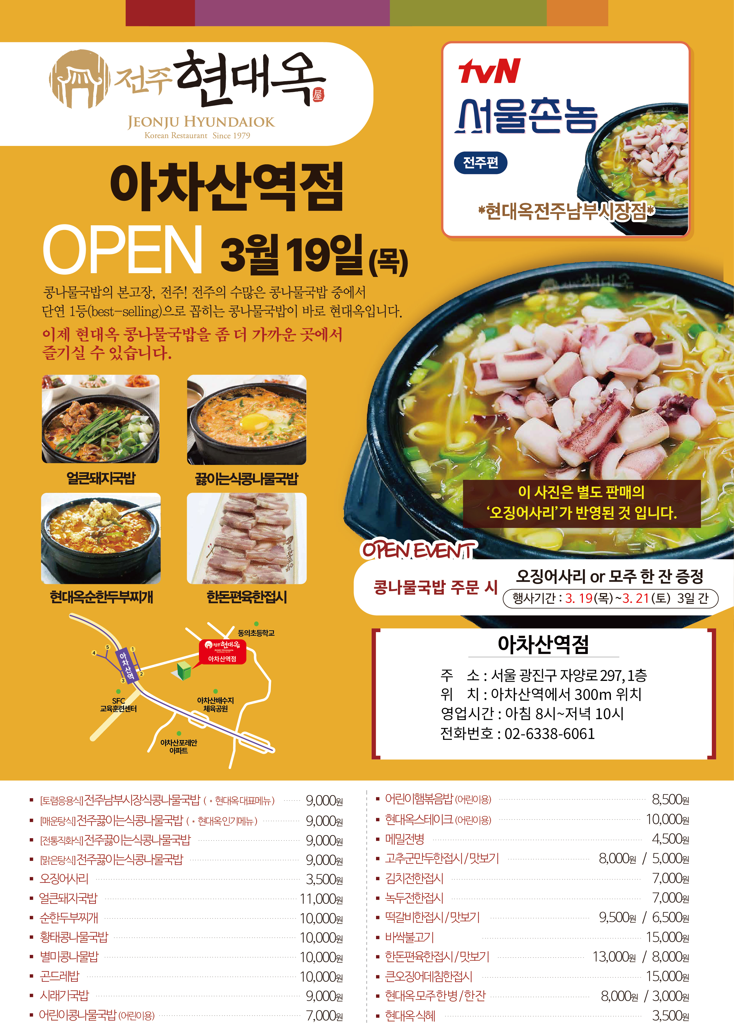 오늘자 서울 광진구 구의동에 현대옥 서울아차산역점이 오픈하였습니다.