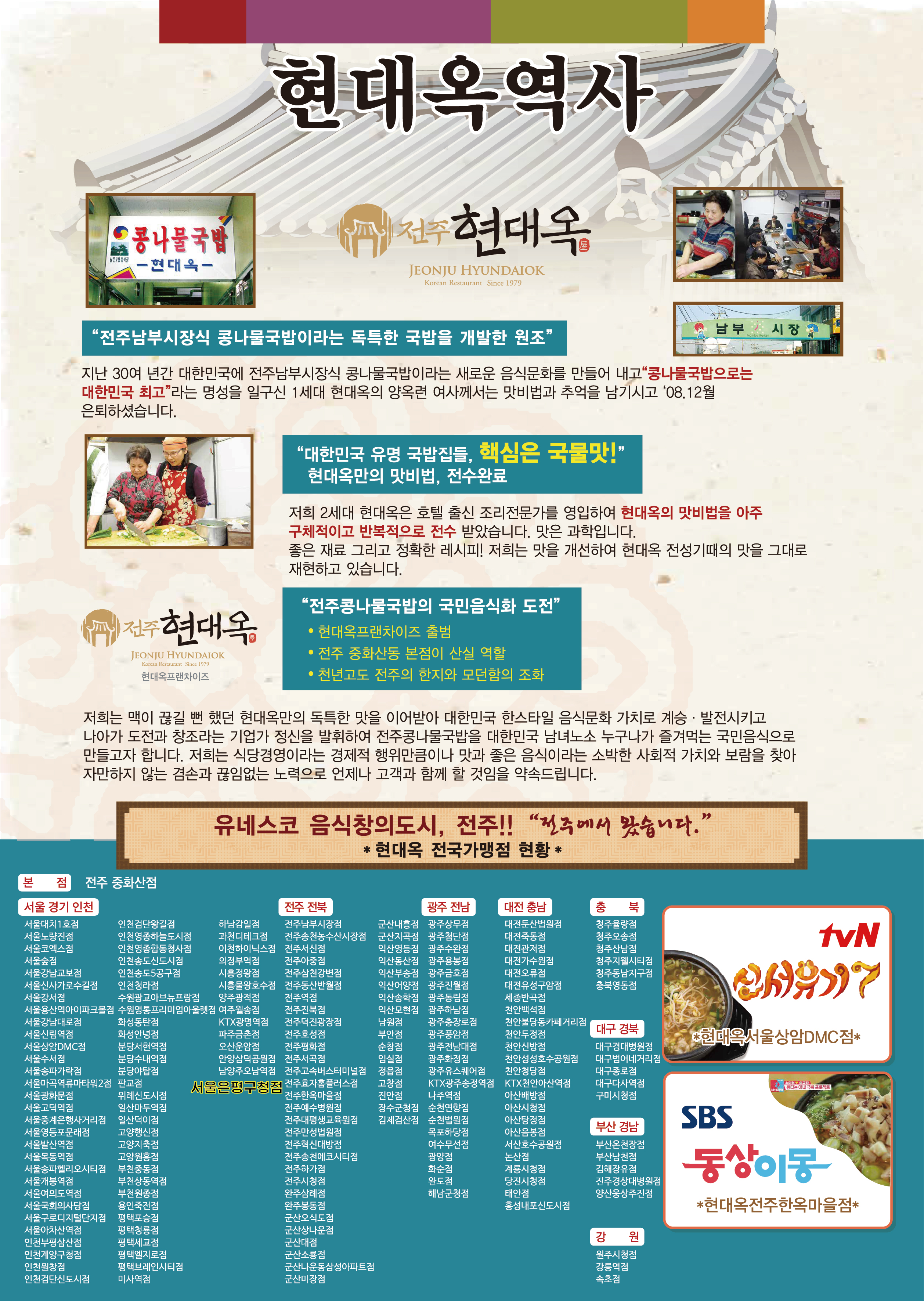 오늘자 서울 은평구 응암동에 현대옥 서울은평구청점이 오픈하였습니다. 인근의 직장인들과 주민들께서도 이제 "전주에서 온 진짜배기, 전주현대옥콩나물국밥"을 가까운 곳에서 즐기실 수 있게 됐습니다.